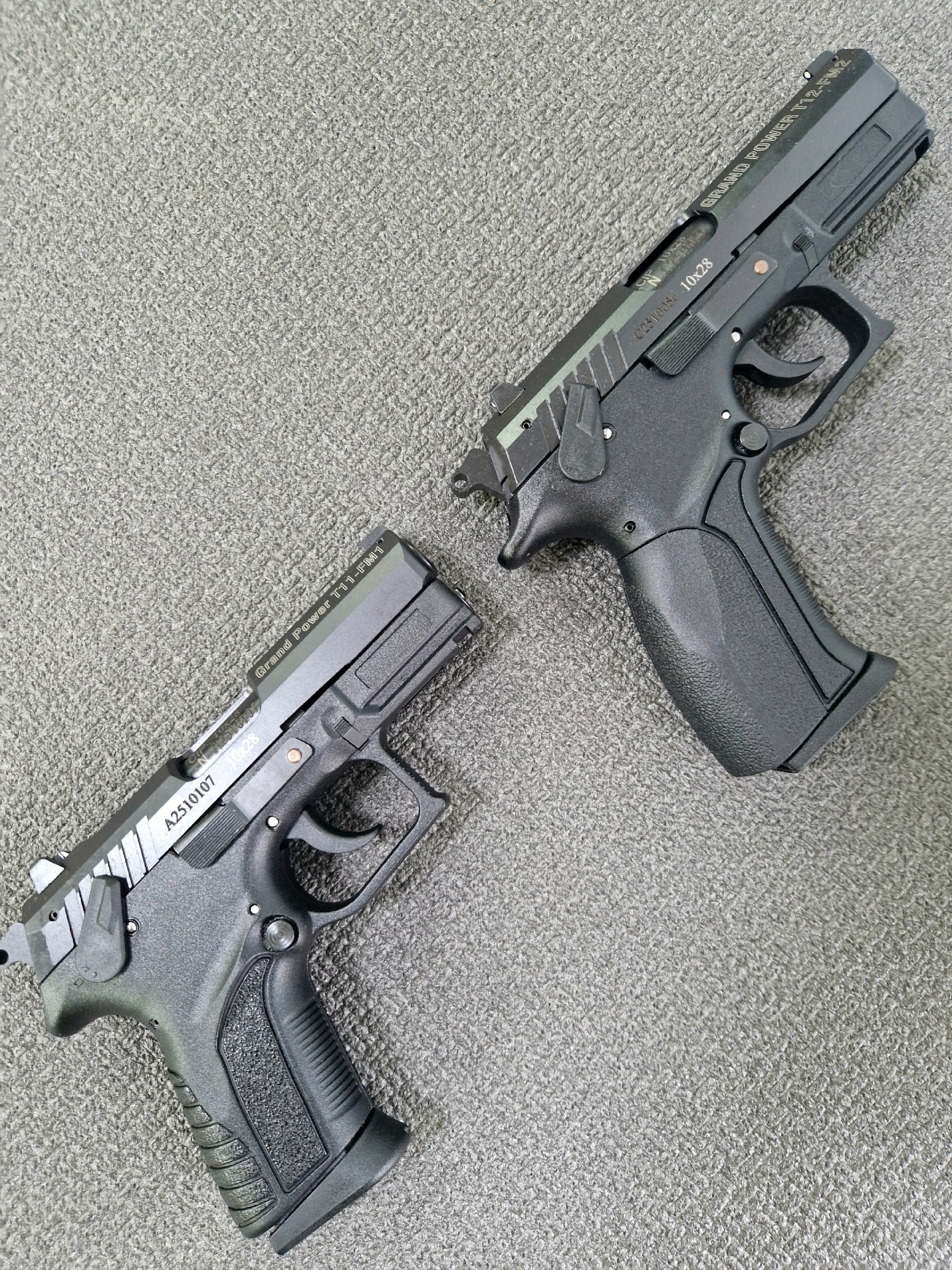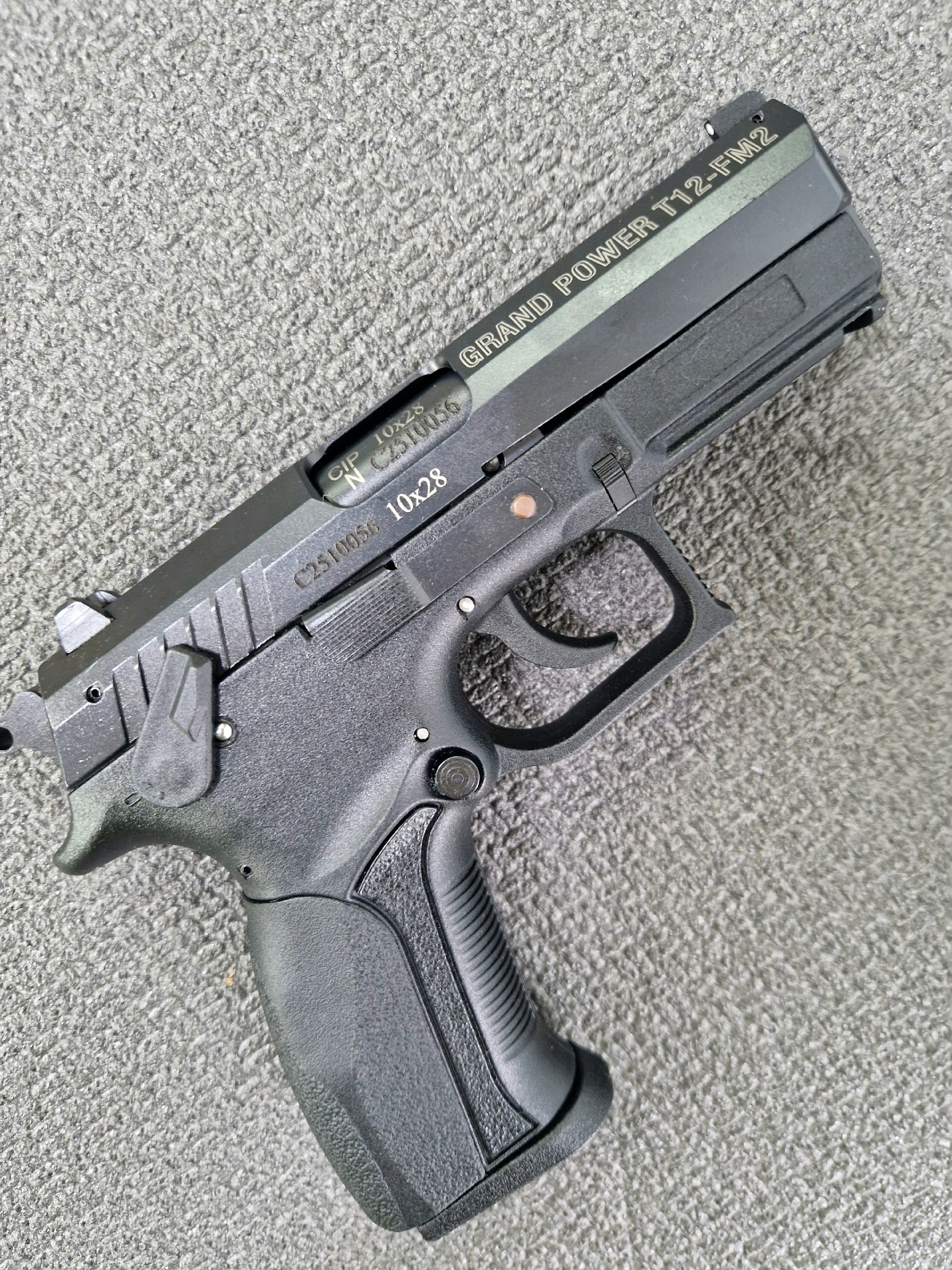 Grand Power Т12-FM2 кал.10х28 - улучшенная версия T12-FM1. В этой модификации пистолет получил новую оболочку с увеличенной кнопкой и улучшенной разборочной плитой. Разработчики объединили скобу с корпусом, что снижает риск ее случайной поломки во время разборки пистолета.