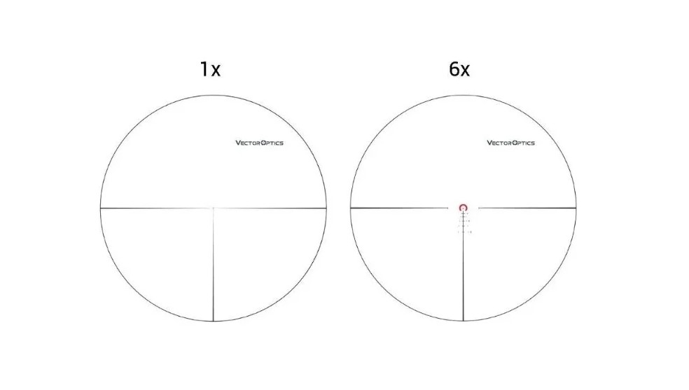 Благодаря диапазону кратности, прицел Vector Optics Continental 1-6x28, 34 мм, Tactical FFP работает и как закрытый коллиматор с «чистой» единицей и очень широким полем зрения 23,5 град. (или 41,6 м/100 м), и как «загонник» с функциями прицела высокой кратности. Оптическая система — это линзы, изготовленные из низкодисперсионного немецкого стекла Schott HD, лантановый объектив LaREE, широкоугольный окуляр Ø 42 мм и износостойкое просветляющее покрытие VePRO FMC. Это обеспечивает высокий уровень светопропускания (свыше 90%), отсутствие дисторсии и полную компенсацию хроматических и сферических аберраций. Никаких цветовых или геометрических искажений, полное отсутствие тоннельного эффекта при любой кратности и кристально чистая картинка как в сложных погодных условиях, так и при низкой освещённости (рассветно-сумеречный период, поздние сумерки или светлая ночь).