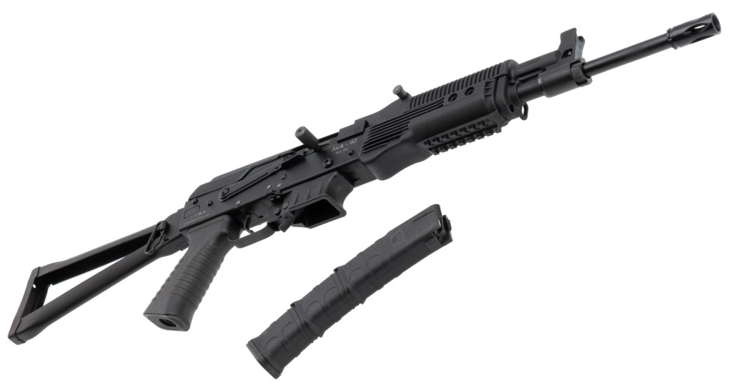 Карабин Jack-02 в тактическом исполнении производства компании Молот-Армз - полуавтоматическая модель калибра 9х19 мм Luger. Работа автоматики основана на принципе отдачи свободного затвора. Ствол карабина нарезной, с резьбой М14х1- (отрицательная) для установки дульных насадок. В предлагаемом исполнении карабин комплектуется боковой планкой для установки прицела. Штатные прицельные приспособления - регулируемая прицельная планка и мушка. Приклад и цевье карабина Джек-02 выполнены из пластика, приклад оснащен амортизирующим затыльником. Имеется подствольная планка Пикатинни для крепления ЛЦУ, сошек, тактической рукояти и т.п. аксессуаров. Магазин отъемный, его вместимость 10 патронов. Безопасность обращения с оружием обеспечивает предохранитель.