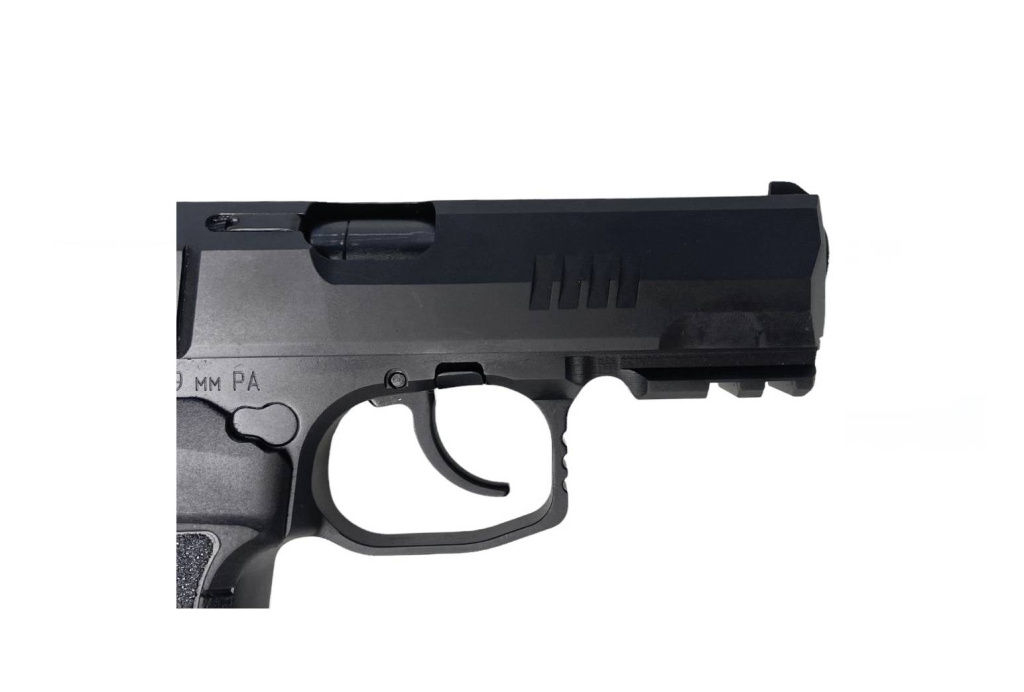 Стрела МП9 - компактный пистолет для самообороны, а также спортивной и тренировочной стрельбы. Конструкция исключает возможность использования боевых патронов. Ударно-спусковым механизмом двойного действия . Прицельные приспособления - штатные мушка и целик. Магазин пистолета отъемный, вместимостью 8 патронов. При израсходовании боеприпасов затвор фиксируется в заднем положении на затворной задержке. Имеется планка Picatinny под стволом для установки дополнительных аксессуаров.