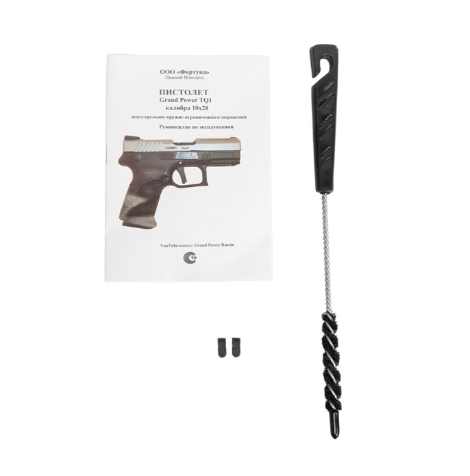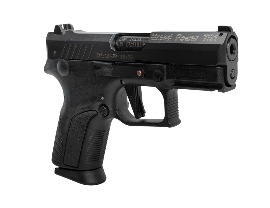 Травматический пистолет Grand Power TQ1 калибр 10x28 произведен оружейной компанией "ООО Фортуна". Модель выполнена на базе боевого пистолета Grand Power Q1S производства Словакии. Сочетает ударниковый УСМ, продуманную систему безопасности и эргономику, обеспечивая быстрое извлечение и высокую готовность к применению. Ударниковый механизм одинарного действия и отсутствие ручного предохранителя сокращают время на подготовку к выстрелу. Есть двойная система безопасности — два автоматических предохранителя: на спусковом крючке (блокирует ход до полного нажатия) и внутри затвора (блокирует ударник до момента выстрела). Отличается надежной конструкцией — стальной затвор и ключевые механизмы, ствол из оружейной стали, рамка из ударопрочного стеклонаполненного полиамида.