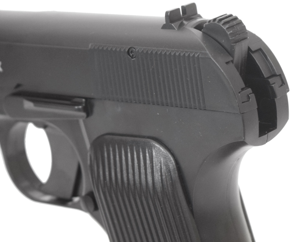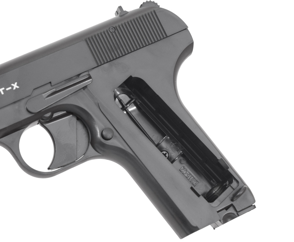 Пневматический пистолет Borner TT-X представляет собой газобалонную модель, предназначенную для спортивной, тренировочной и развлекательной стрельбы. ТТ-Х по габаритам схож со своим боевым прототипом - пистолетом Токарева (ТТ), масса пистолета Борнер ниже в силу того, что его корпус изготовлен из пластика. При полной длине пистолета в 195 мм его масса не превышает 389 гр. Источником энергии, используемой для производства выстрела, является 12-ти граммовый баллончик СО2, устанавливаемый в рукоять пистолета. Баллончик обеспечивает начальную скорость снаряда в 120 м/с. Стрельба из пистолета ведется шариками ВВ калибра 4,5 мм, которые в количестве 15 шт размещаются в отъемном магазине. Пистолет Борнер ТТ оснащен ударно-спусковым механизмом двойного действия; стрельба ведется в полуавтоматическом режиме. Для исключения случайного выстрела производителем предусмотрен неавтоматический предохранитель.