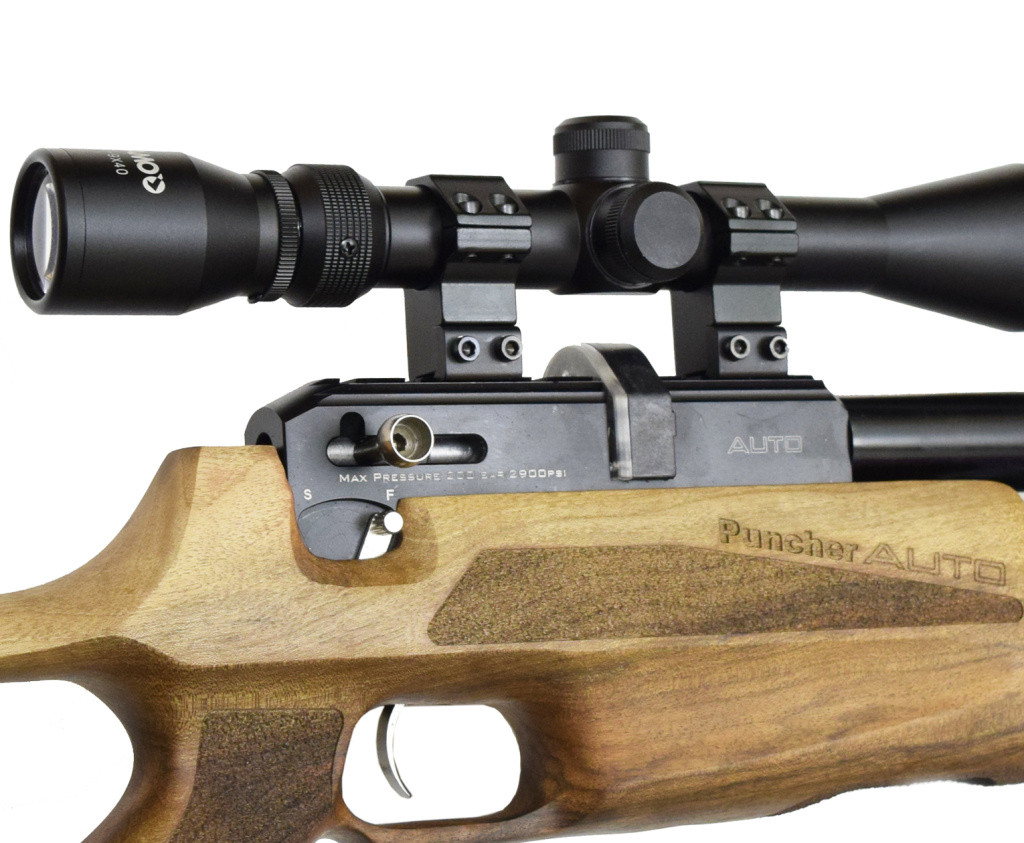 Пневматическая винтовка Kral Puncher Maxi 3 с ложей из древесины ореха подходит для развлекательной стрельбы, а также для охоты на некрупную дичь (после усиления). Задник изготовлен из мягкой резины, имеется регулировка спускового крючка – можно настроить удобное для себя усилие нажатия. Прицельных приспособлений нет, для точной стрельбы необходимо установить оптический прицел. Специально для этого винтовка снабжена двумя базами под крепления на планку Weaver. Выстрел происходит благодаря воздуху, который под давлением закачивается в резервуар. Объем баллона 425 см3 с максимальной накачкой в 200 бар дает возможность произвести примерно 80 выстрелов, причем первые 10-12 будут с максимальной мощностью и дальностью полета пули около 100 метров. Прицельная дальность 40-50 метров. Скорость вылета свинцовой пули составляет от 120 м/с с возможностью усиления до 300 м/с. В комплекте с Kral Puncher Maxi 3 идет два магазина на 12 свинцовых пуль. Режим стрельбы полуавтоматический - это означает, что при нажатии на крючок механизм готовит карабин к следующему выстрелу.