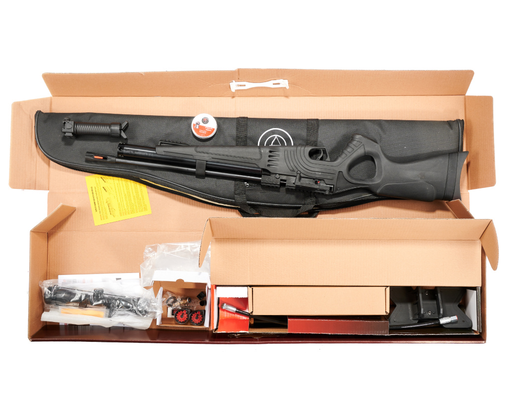 Набор от турецкого производителя Hatsan, включающий пневматическую винтовку модели Flash 101, а также насос, прицел 4x32, пульки, сошки, саундмодератор и чехол. Винтовка представляет собой модель калибра 5,5 мм с предварительной накачкой (PCP), с биатлонным типом снаряжения, предназначенную для спортивной и развлекательной стрельбы. Объем резервуара для сжатого воздуха составляет 215 см³, максимальное давление - 200 бар; винтовка оснащена встроенным манометром для контроля давления. Прицельные приспособления не предусмотрены, но для установки оптического (имеется в комплекте) или коллиматорного прицела предусмотрена комбинированная планка "ласточкин хвост" / Пикатинни. На нижней стороне цевья также расположена планка Пикатинни для крепления ЛЦУ, фонарика или иных дополнительных аксессуаров. Приклад, с вырезом для большого пальца и цевье винтовки Хатсан Флэш 101 выполнены из пластика. Для исключения случайного выстрела имеется предохранитель. Магазин - барабанного типа, вместимостью 12 пуль. В поставляемом варианте конструкции мощность винтовки не превышает 3 Дж.
