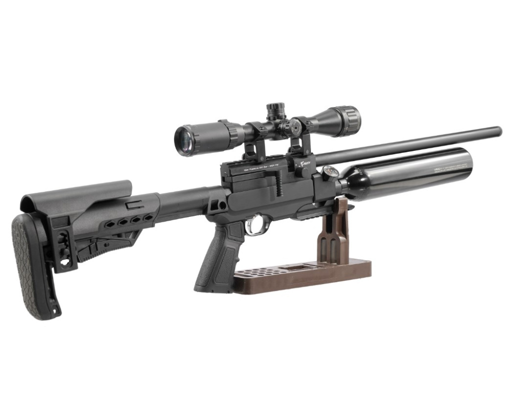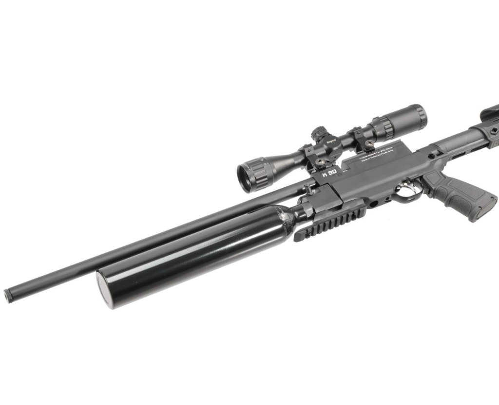 Пневматическая прямоточная винтовка в тактическом исполнении, с предварительной накачкой (РСР), с боковым взводом, калибра 6,35 мм, производства турецкой оружейной компании Kuzey Arms, предназначена в основном для спортивно-развлекательной и тренировочной стрельбы. В качестве источника энергии используется сжатый воздух, закачиваемый в резервуар объемом 500 см³. Рабочее давление в резервуаре - 250 бар, для контроля давления имеется встроенный манометр. Винтовка не оборудована штатными прицельными приспособлениями, но предусмотрена планка Пикатинни для крепления оптического или коллиматорного прицела. Ложа винтовки Кузей К90 выполнена из алюминиевого сплава, приклад и пистолетная рукоять - из пластика. Приклад телескопический, оснащен регулируемым подщечником и амортизирующим затыльником. Для исключения случайного выстрела предусмотрен ручной предохранитель.