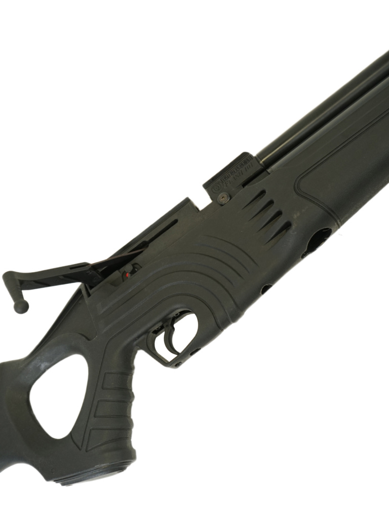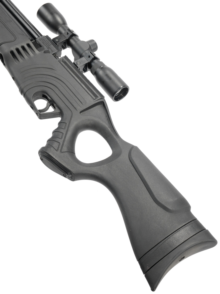 Набор от турецкой оружейной компании Hatsan, в составе пневматической винтовки Flash 101 QE, насоса, прицела 4x32, пуль, сошек и чехла. Винтовка представляет собой модель калибра 5,5 мм с предварительной накачкой (PCP) и с биатлонным типом снаряжения. Основное назначение винтовки - спортивная и развлекательная стрельба. Резервуар для сжатого воздуха, объемом 215 см³, выполнен из алюминиевого сплава; максимальное давление - 200 бар; есть встроенный манометр для контроля давления. Прицельные приспособления отсутствуют, но для установки оптического (имеется в комплекте) или коллиматорного прицела предусмотрена комбинированная планка "ласточкин хвост" / Пикатинни. На нижней стороне цевья также расположена планка Пикатинни для крепления ЛЦУ, фонарика или иных дополнительных аксессуаров.