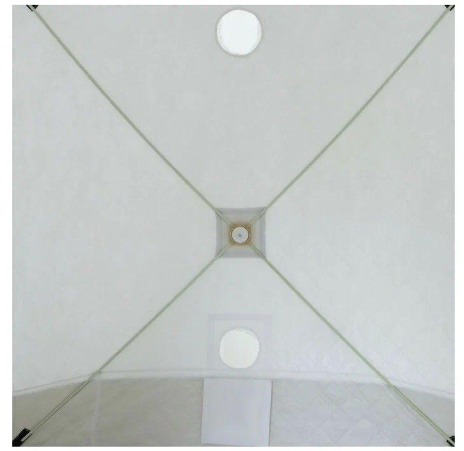 Палатка для зимней рыбалки куб СЛЕДОПЫТ Премиум трехслойная. Переводится в установленное положение за 1 минуту одним человеком. Может обеспечить комфортное укрытие четырех рыбаков. Выпускаются в расцветке: белая/олива. Легкая и компактная, поместится в багажнике автомобиля. Легкосъемные окна. Быстрое проветривание и устранение конденсата. Наличие вытяжного клапана. Проветривание и возможность установки дымохода походной печки. Наличие внутренних карманов для мелочей, снастей, личных вещей.